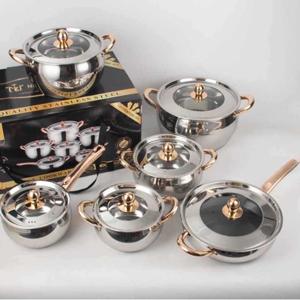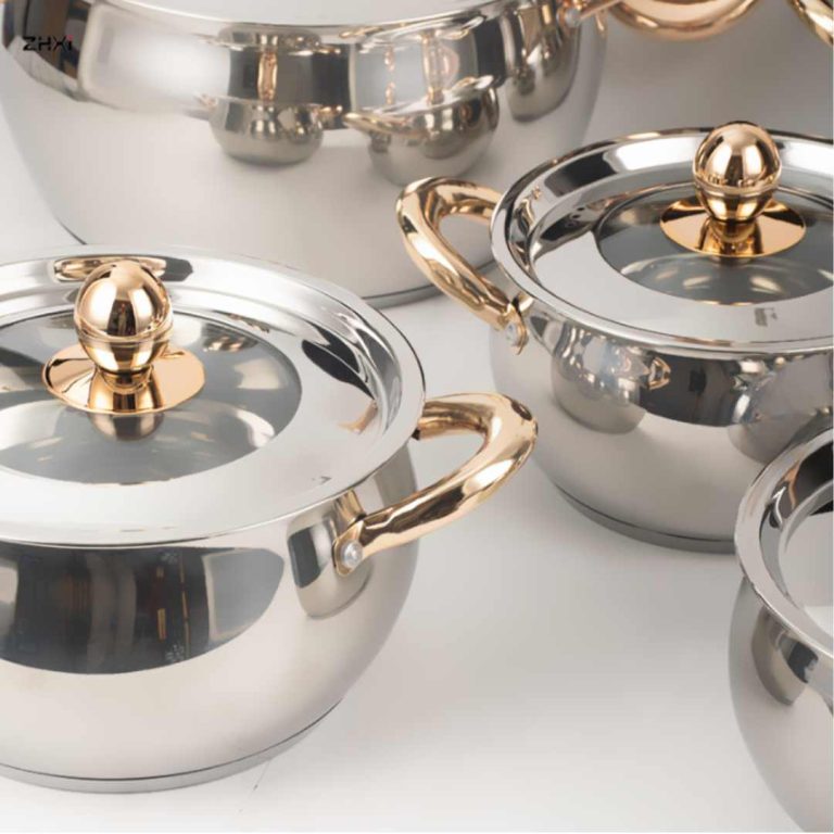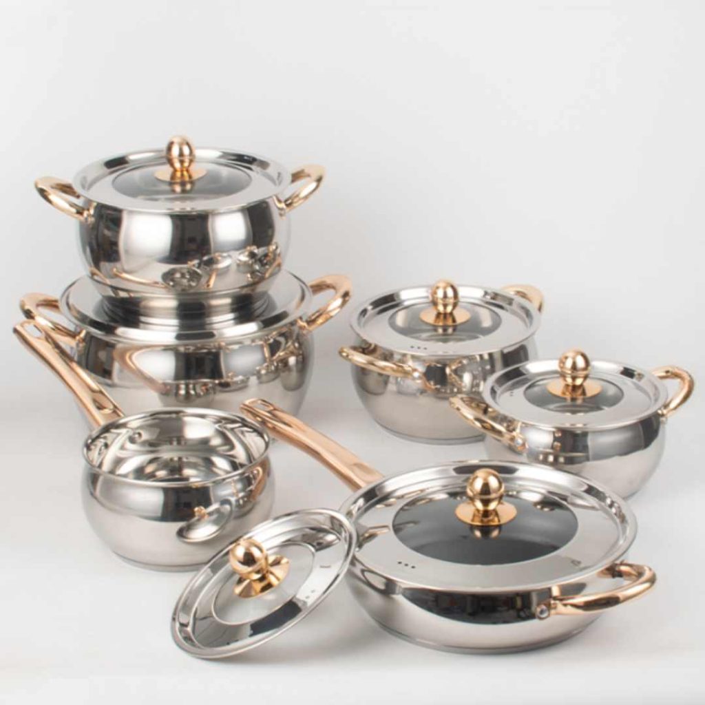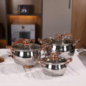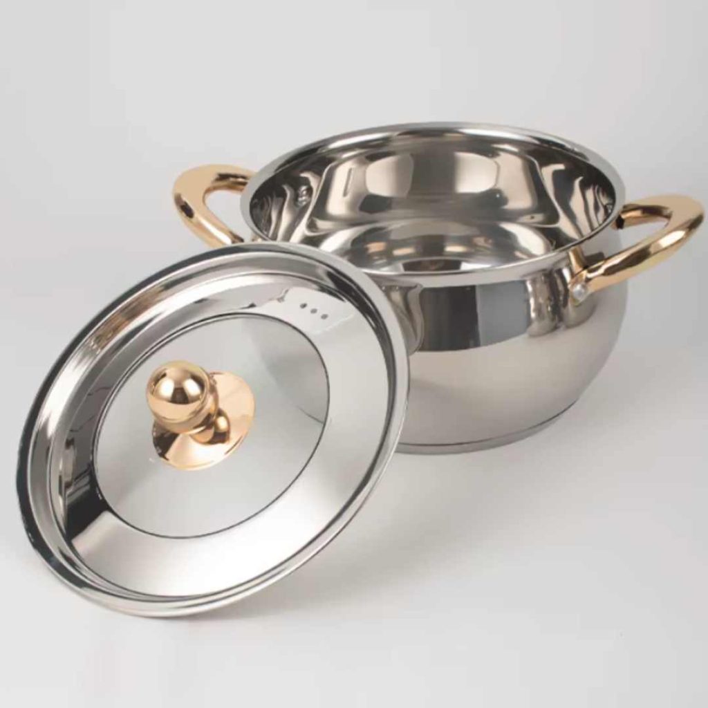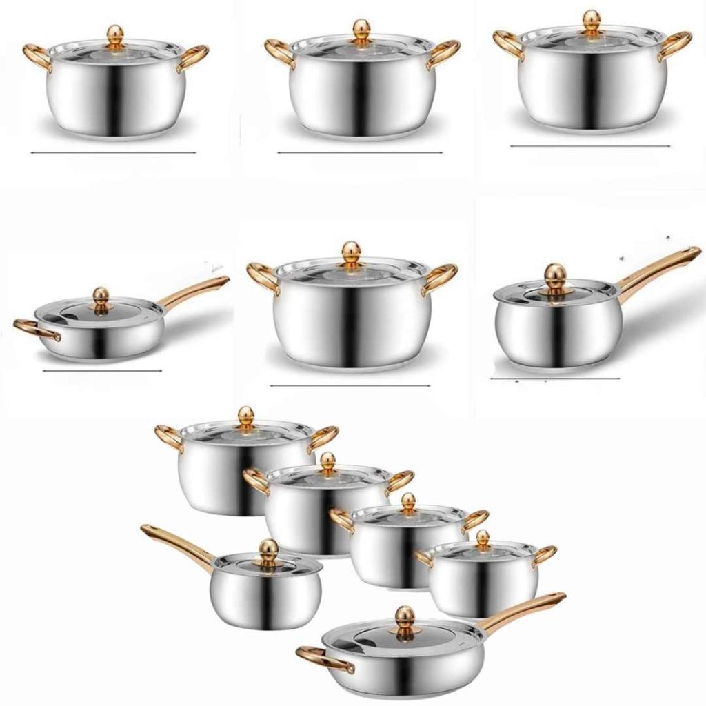 Използвам комплекта от три седмици на индукционен плот: топлината е равномерна и сосовете вече не залепват. Стъклените капаци са много удобни за контрол на готвенето. Мият се бързо, а златистите дръжки придават елегантен вид на кухнята.