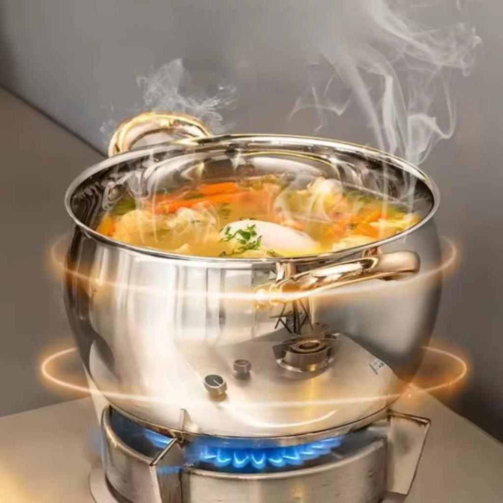 Тайната е в дебелото дъно с равномерно разпределение на топлината, идеално и за индукционни котлони: няма горещи точки, стабилно готвене и по-бързо време за приготвяне.