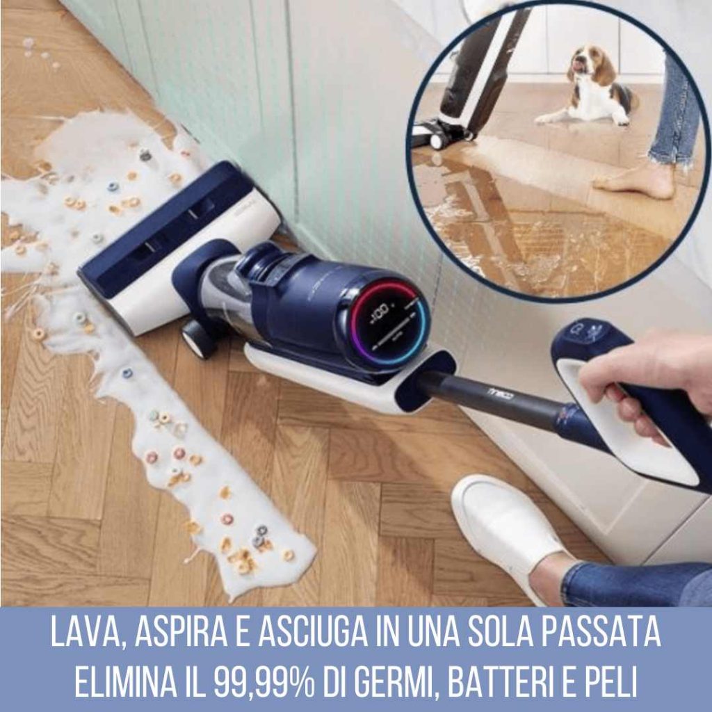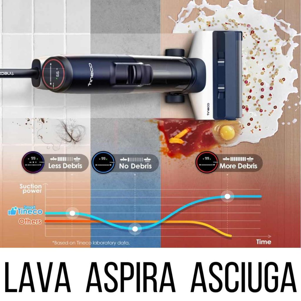 Basta perdere tempo con scope, mocio e panni. Questo aspirapolvere intelligente lava, aspira e asciuga contemporaneamente, lasciando i tuoi pavimenti perfettamente puliti e asciutti in pochi minuti.